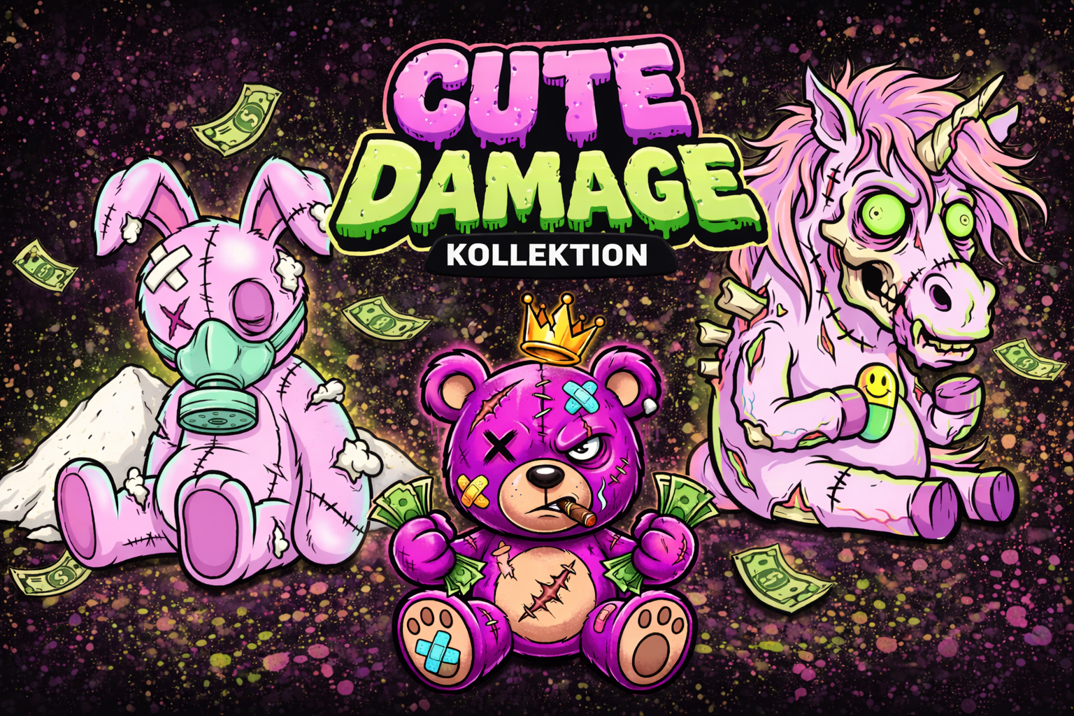 Die Cute Damage Kollektion richtet sich an Menschen die fühlen statt funktionieren. An Raver Festivalgänger und Nachtschwärmer die wissen dass Stärke nicht perfekt aussieht.